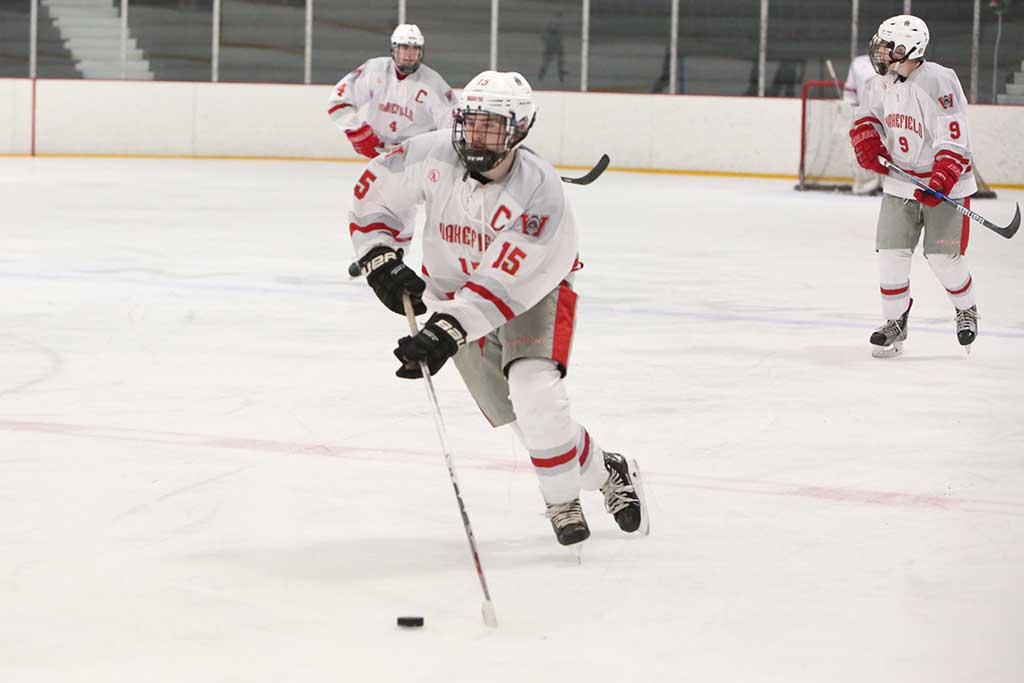 STONEHAM — On Saturday night, the Wakefield Warriors boys’ hockey team snapped a 4-game winless skid, coming from behind to defeat Woburn in dramatic fashion.