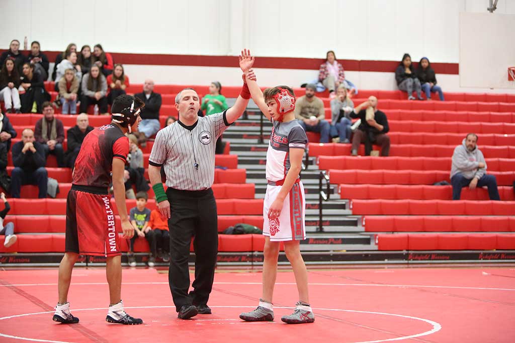 While this meet might justly be remembered as DiMascio’s Day, plenty of Warriors had great matches, as six other Wakefield wrestlers got individual match wins. In fact, all six of Wakefield’s wins heading into the final match were pins.