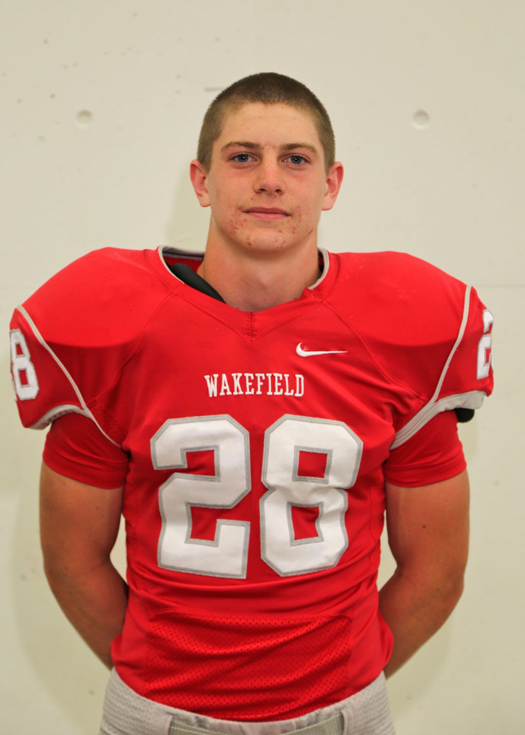 SENIOR RB/LB Luke Martin was named the Daily Item Player of the Week for his effort in Wakefield’s 35-27 overtime game against Lexington. Martin rushed for 207 yards on 38 carries and scored two touchdowns. On defense, Martin had three tackles. (Donna Larsson Photo)