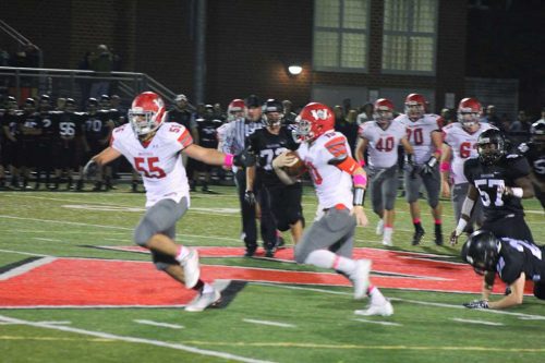 Wakefield responded with a long drive that closed the first quarter and spilled into the second. The drive started 1st and 25 from the 24 yard line after a chop block, but Wakefield chipped away after a nine-yard run from senior Bobby Young, and after a completion from quarterback Mike Lucey to Fitzpatrick, Young kept the drive alive with a first-down run for eight yards. The second quarter started with the Warriors facing a 3rd and 10 when Lucey connected with junior running back Danny Marinaccio, who made a nice catch after a deflection for 13 yards. Wakefield kept grinding with the running game and Young would eventually punch it in for a five-yard touchdown run. The point-after attempt was blocked, making the score 7-6.