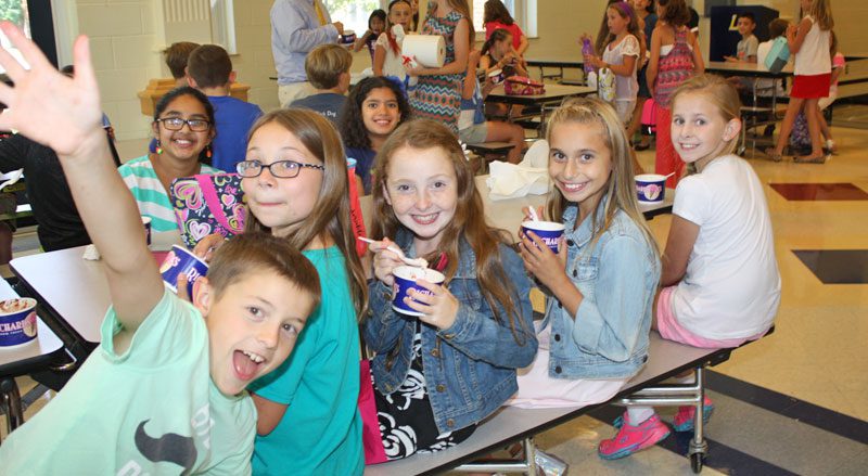 THIS GROUP of fifth-grade friends was very excited about enjoying their ice cream sundaes together on the first day of school at the annual social event sponsored by the Middle School PTO. From left: Josh Simpson, Ava Tardito, Ella Cammarato, Ava Natola and Maggie Davidson. (Maureen Doherty Photo)