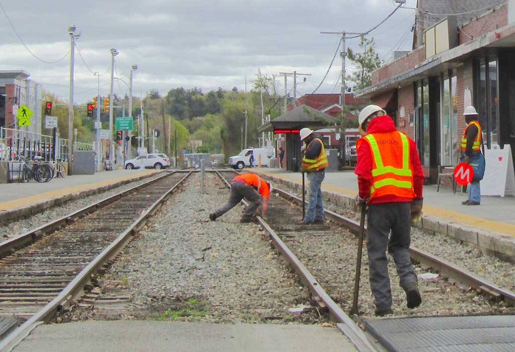 They’ve been working on the railroad May 16, 2019 COMMUTER RAIL operator Keolis had a crew working on the tracks at the Wakefield train station on North Avenue yesterday. (Mark Sardella Photo) Published in the May 16, 2019 edition.